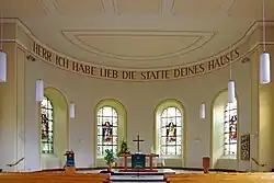 - Die Kanzel wurde abgebaut, modernisiert und in den vorderen Bereich des Altarraums gestellt.