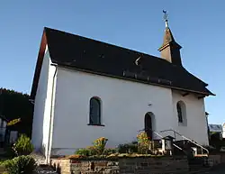 Der zweijochige spätromanische Saal mit leicht eingezogenem gerade geschlossenem Chor steht auf einer über dem Edertal gelegenen Anhöhe. Das Gebäude wurde um 1300 errichtet. Der schlichte verputzte Bau ist durch Rundbogenfenster gegliedert. Das Dach ist mit einem kleinen Dachreiter bekrönt. Im Innenraum sind unregelmäßig kuppelige Gratgewölbe eingezogen. Die Kanzel wurde 1682 eingebaut. Das Gebäude wurde bis 1855 auch als Schulraum benutzt.