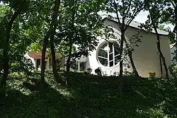 Gegliederter Rundbau mit drei Dachflächen und drei Giebeln