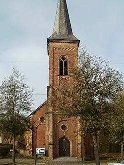 Das Kirchengebäude wurde im neoromanischen Stil in Ziegelbauweise errichtet. Es gliedert sich in Turm, Kirchenschiff und Chor.