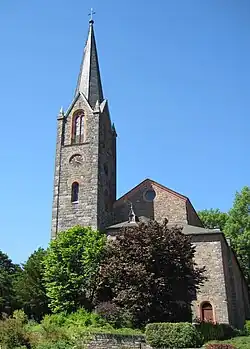 Die vierjochige Emporenbasilika im Rundbogenstil und mit Chor im 5/8-Schluss wurde von 1857 bis 1859 nach Plänen von Friedrich Wilhelm Buchholz, die auf Betreiben von König Friedrich Wilhelm IV. durch Friedrich August Stüler überarbeitet wurden, errichtet. Der Bruchsteinbau wurde aus hammerrechter Grauwacke gemauert und mit Werkstein gegliedert.