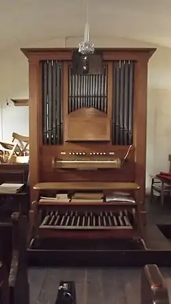 Die Orgel der Kirche wurde im Jahr 1949 von der Orgelbaufirma Walcker (Ludwigsburg) erbaut. Das einmanualige Schleifladen-Instrument verfügt über 5 Register. Die Spiel- und Registertraktur ist mechanisch. Die Disposition lautet wie folgt:[5]