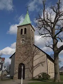 Die Kirche ist eine schlichte, vollständig aus grobem Sandstein errichtete Saalkirche, welche in ihrer architektonischen Formensprache weitgehend den Bergischen Barock anklingen lässt, aber keiner bestimmten Stilrichtung folgt. Das 25 Meter lange Kirchenschiff wird an den Seiten von jeweils fünf schlichten Fensterachsen gegliedert und ist mit dem Chor nach Norden ausgerichtet. Der quadratische, kupfergedeckte Kirchturm beherbergt ein dreistimmiges Geläut und verfügt über eine Turmuhr an der Südseite über dem Eingangsportal. Der Innenraum wird durch die besonders helle Gestaltung mit weißen Wänden und hellen Kirchenbänken geprägt, wobei der etwas dunkler abgehobene Altarbereich hervorsticht. Eine kleine Empore mit treppenartig ansteigender Bestuhlung befindet sich an der Südseite, wo auch die Orgel untergebracht ist. Hinter dem Altarbereich befindet sich eine kleine Chorempore, welche sich über dem Sakristeibereich befindet.[2]