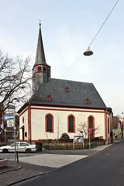 Die Saalkirche mit dreiseitigem Schluss wurde 1718 nach einem Entwurf von Johann Jakob Bager gebaut. Aus dem Satteldach des Kirchenschiffs erhebt sich im Westen im Bereich des Walms seit 1730 ein achteckiger, mit einem spitzen Helm bedeckter Dachreiter, der die Turmuhr und den Glockenstuhl beherbergt. Der Innenraum hat Emporen an drei Seiten. An der Decke befinden sich Bilder, die die zwölf Apostel zeigen. Die Orgel mit 9 Registern, einem Manual und einem Pedal wurde 1893 von Gustav Raßmann gebaut und 1951 von der Förster & Nicolaus Orgelbau restauriert.[1]