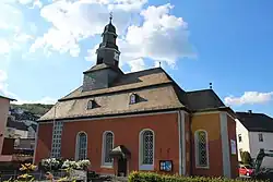 Die Saalkirche wurde von 1776 bis 1777 an einer anderen Stelle errichtet, wie die vollständig abgebrannte, ursprüngliche Kirche. An das mit einem Mansardwalmdach bedeckte Kirchenschiff schließt sich im Osten ein eingezogener querrechteckiger Chor an. Der Dachreiter im Westen ist mit einer achtseitigen, mehrfach gestaffelten Haube bedeckt. Der Innenraum ist mit einem bemalten Flachdecke überspannt. In ihm befindet sich noch der Dielenboden der alten Kirche als Täfelung an der Wand. Zu den ursprünglich dreiseitigen Emporen wurde im 19. Jahrhundert eine weitere Empore für die Orgel von 1893 mit 21 Registern, 2 Manualen und einem Pedal hinzugefügt. 1973/75 wurde die Kirche nach Westen hinaus über die Dietzhölze verlängert, um die steigenden Zahlen der Kirchenbesucher auffangen zu können.