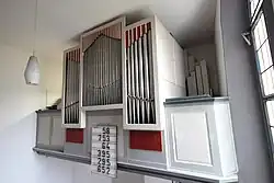 Ein unbekannter Orgelbauer baute im 18. Jahrhundert eine Orgel, die über sieben Register auf einem Manual und kein Pedal verfügte. Da sie im 19. Jahrhundert als nicht mehr zeitgemäß empfunden wurde, erhielt Peter Dickel den Auftrag, Verbesserungsvorschläge einschließlich einer Dispositionsänderung zu unterbreiten. Der Umbau wurde vor 1873 von Gustav Raßmann ausgeführt und beinhaltete einen Registertausch, die Ergänzung um ein Pedal mit einem Subbass 16′ und den Einbau neuer Bälge.[10] Die heutige seitenspielige Brüstungsorgel wurde 1962 von Günther Hardt mit acht Registern auf zwei Manualen und Pedal gebaut. Die alte Orgel wurde in der im 19. Jahrhundert umgebauten Form der Evangelischen Kirche in Bissenberg überlassen, wo der Prospekt erhalten ist, hinter dem 1965 ein neues Werk eingebaut wurde. Die Disposition der Hardt-Orgel lautet wie folgt:[11]
