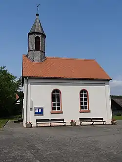 Im Westen ist dem Satteldach ein vollständig verschieferter, achtseitiger Dachreiter aufgesetzt. Über der Glockenstube mit vier rundbogigen Schallöffnungen erhebt sich ein kleiner Spitzturm, der von Turmknauf, schmiedeeisernem Kreuz und Wetterhahn bekrönt wird.