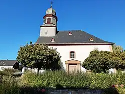 Im Jahre 1789 wurde mit dem Bau der spätbarocken Saalkirche begonnen. Am 13. Juni 1790 wurde sie eingeweiht. Aus dem Satteldach des Kirchenschiffs erhebt sich im Westen ein quadratischer, schiefergedeckter, mit einer bauchigen Haube bedeckter Dachreiter, auf dem ein achteckiger Aufsatz sitzt, der die Turmuhr und den Glockenstuhl beherbergt. Das Portal im Westen befindet sich in einem leicht vorgezogenen, mit einem Giebel bekrönten Risalit.