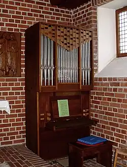 Die kleine mitten im Dorf am Rand der Römerstraße stehende Kirche besitzt ein hölzernes Altarbild und eine Glocke von 1530. Der niedrige Turm wird von einem verschieferten Glockengeschoss und eingezogenem Spitzhelm gekrönt. Das anschließende unverputzte Kirchenschiff aus Bruchsteinmauerwerk besitzt rundbogige Fenster und einen rundbogigen Eingang.[3]