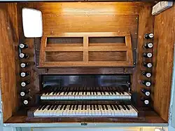 Die Orgel in der neuerbauten Kirche wurde 1866 durch August Ratzmann aus Gelnhausen erbaut. Der neugotische Prospekt besitzt drei gleich hohe Felder; das mittlere ist unterteilt.[2]