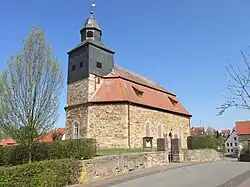 Die Saalkirche wurde unter Verwendung von Teilen des Vorgängerbaus 1718/19 aus Bruchsteinen erbaut. Das mit einem Mansarddach bedeckte Kirchenschiff hat nach Osten und Westen einen dreiseitigen Schluss. Im Westen steht ein eingezogener quadratischer Dachturm, der mit einem schiefergedeckten Geschoss aufgestockt wurde, auf dem sich ein achteckiger Aufsatz mit der Turmuhr befindet, der von einer glockenförmigen Haube bekrönt wird.