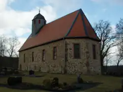 Das romanische Kirchenschiff der Saalkirche aus Bruchsteinen wurde 1733/34 auf das Doppelte nach Osten verlängert und dreiseitig geschlossen. Die Schießscharten und die Fenster des romanischen Kirchenschiffs wurden bei der Restaurierung 1970 zugesetzt. Aus dem Satteldach des Kirchenschiffs erhebt sich im Westen ein sechseckiger Dachreiter, hinter dessen Klangarkaden sich der Glockenstuhl befindet, in dem eine im 15. Jahrhundert gegossene Kirchenglocke hängt. Der Dachreiter ist mit einer glockenförmigen Haube bedeckt. Der Innenraum hat an zwei Seiten Emporen. Zur Kirchenausstattung gehören ein Ambo von 1724, eine Kanzel von 1639 und ein romanisches Taufbecken.
