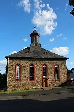 Bei einer Feuersbrunst am 18. Juni 1825 wurde auch die Kapelle in Schutt und Asche gelegt. Am ursprünglichen Platz wurde die klassizistische Saalkirche aus Bruchsteinen erbaut und am 18. Oktober 1831 eingeweiht. Das Kirchenschiff ist mit einem Walmdach bedeckt, aus dessen Mitte sich ein quadratischer Dachreiter erhebt, auf dem eine achteckige Laterne sitzt.