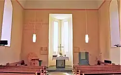 Die Ursprünge des Kirchengebäudes reichen bis ins 18. Jahrhundert zurück. Es handelt sich um einen Saalbau mit drei Fensterachsen. Der Kirchturm ist in die westliche Giebelseite des Kirchenschiffes integriert und verfügt über ein Satteldach. Auf der Ostseite ist an das Kirchenschiff eine zweiseitige Erweiterung angefügt, in dem sich der Altar befindet.