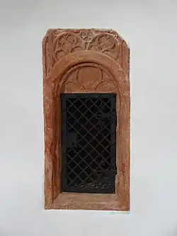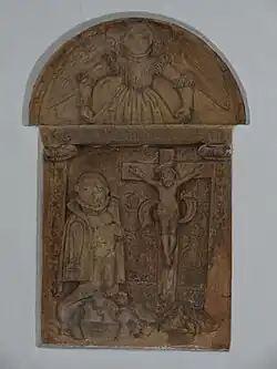 In der nördlichen Chormauer ist eine Sakramentsnische mit Dreipass in einem Bogenfeld aus der Erbauungszeit des Chors um 1500 erhalten, die 1913 eine eiserne Gittertür erhielt. Ein Epitaph um 1600 stellt den Verstorbenen unter einem Kruzifix und den Erzengel Michael im Bogenfeld über dem Architrav dar.[4]
