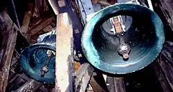 Der Dachreiter beherbergt ein Zweiergeläut. Im Jahr 1605 ließ die Gemeinde eine Glocke gießen, die 1888 zersprang und von Georg Otto in Gießen umgegossen wurde. Sie trug oben die Inschrift „HS IK HM MLRS 1605 MTP LP2“ und unten „GH IM HB IH HF“. Der Verbleib einer jüngeren Glocke aus dem ersten Drittel des 17. Jahrhunderts ist ungewiss.[24]