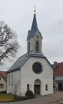 Vor 1883 stand an der Stelle der heutigen Kirche eine kleinere offene Kapelle, die seit 1496 bezeugt war.[2] Das jetzige Kirchengebäude wurde im Jahre 1883 von dem Stuttgarter Architekt Friedrich Elsäßer,[3] dem Büro- und Bauhüttenleiter von Christian Friedrich von Leins, errichtet. Es hat etwa 60 Sitzplätze und wurde zuletzt im Jahre 1998 renoviert.