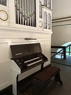 - ↑ Im Vergleich zu den Fotos der originalen Registerschilder auf Wikimedia Commons (hier) und (hier) enthält die Angabe der Disposition bei Scheffler mehrere Fehler: Die richtigen Schreibweisen sind Gedackt und Voix Celeste; bei den vier Registern des II. Manuals (oberste Leiste) ist auf dem Foto ein Porzellanschild abgefallen, aber es kann nur Viola d’amour 8′ oder Rohrflöte 4′ sein; Viola d'amour ist als erste Pfeifenreihe der Voix-celeste-Schwebung wahrscheinlicher.