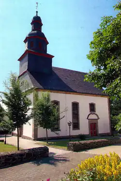 Die erste Kirche stand von 1570 bis 1680 auf dem gleichen Platz, auf dem die heutige Kirche steht. Bereits 1681 musste eine neue Kirche gebaut werden, die 1727 fast ganz wieder abgerissen und neu erbaut wurde. Allerdings war auch dieser Bau nicht sehr gründlich, so dass 1752 bis 1755 die heutige Kirche nach einem Entwurf von Johann Helfrich Müller, dem letzten Spross einer Architektendynastie,[1] gebaut wurde. Sie wurde allerdings im Laufe der Zeit leicht verändert. So wurde bei der letzten Renovierung in den Jahren 1969 bis 1971 das Chorgestühl, in dem die Herren von Seebach ihren Platz hatten, entfernt.