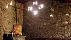 Die äußere Erscheinungsform des unverputzten, aus Sandstein errichteten Sakralbaus stellt eine Kombination der Symbole von Schiff und Burg dar.[2]