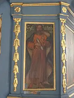 Die hölzerne, polygonale Kanzel des 18. Jahrhunderts in blauer Fassung an der Südwand hat zwischen vergoldeten Eckpilastern mit Knospengirlanden Bilder der Apostel Jakobus, Petrus und Johannes in den Kanzelfeldern. Ein angeschlossener Pfarrstuhl mit durchbrochenem Gitterwerk leitet zum Kanzelaufgang über.