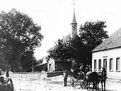 Doch auch zuvor wird an gleicher Stelle ein Vorgängerbau gestanden haben. Sie war dem Heiligen Willibrord († 739) geweiht. Um 1200 wird der zuvor romanische Bau einer Nachfolgekirche im gotischen Stil gewichen sein. Diese wurde im Dreißigjährigen Krieg zerstört. Auf den noch erhalten gebliebenen Mauern wurde nach 1648 eine neue Kirche erbaut. Es lässt sich nicht mit Sicherheit sagen, ob dies die Kirche ist, die 1731,[3] andere Quellen sprechen von 1788,[4] neu errichtet und 1901 wieder abgerissen wurde. Die heute existente Kirche ist also die dritte, wahrscheinlich die vierte oder sogar fünfte Kirche an diesem Platz.
