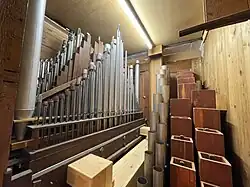Aufgrund anstehender Innenrenovierungsarbeiten wurde die Orgel 2009 vorübergehend ausgebaut und einer Restaurierung durch die Orgelbauerfirma Hoffmann und Schindler aus Ostheim vor der Rhön unterzogen. 2010 wurde sie wieder eingebaut. Dabei fand auch eine Umgestaltung des Orgelraums statt: Der Blasebalg wurde in einen eigens hergerichteten Raum auf dem Kirchenboden verlagert, sodass auf der Empore über dem Chorraum zusätzlicher Stauraum gewonnen werden konnte. Die Schleifladenorgel verfügt über neun Register auf einem Manual mit mechanischer Traktur und Pedal mit pneumatischer Traktur.[5]