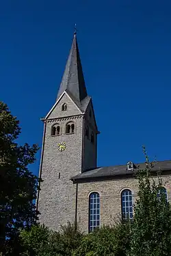 Ursprünglich wurde an dieser Stelle um 700 erstmals eine Holzkirche errichtet. Diese wurde im Jahr 772 durch einen Brand durch heidnische Sachsen zerstört (gemäß Landrat Sybel). Um 1000 erfolgte mit Hilfe des Stiftes St. Cassius Bonn der Bau eines steinernen Chorgebäudes im romanischen Stil. Um 1100 erfolgte eine Erweiterung Richtung Westen durch ein Kirchenschiff. Der Bau der Sakristei 1522 und der Bau des Seiten- und Mittelschiffes durch den Homburgischen Grafen Wilhelm dem Älteren 1568 komplettierten die Kirche. Wegen der Baufälligkeit des alten Kirchenschiffes errichtete man 1841–1843 ein neues Kirchenschiff, dessen Einweihung am 22. November 1843 stattfand.
