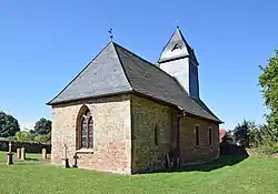 Die in etwa geostete Saalkirche mit Rechteckchor[7] ist erhöht am östlichen Ortsrand aus Bruchsteinmauerwerk mit Eckquaderung aus Sandstein errichtet. Der umgebende Friedhof wird an drei Seiten von einer Mauer umschlossen.[1]