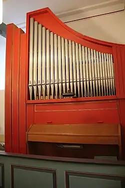 Die Gemeinde schaffte im Jahr 1892 eine erste Orgel von Ratzmann aus Gelnhausen an. Sie ist ebenerdig in der Nordwestecke aufgestellt. Die rote Fassung nimmt das Rot des Kanzelkorbs auf. Das heutige Instrument baute Werner Bosch im Jahr 1962 als opus 298. Es verfügt über fünf Register, die auf einem Manual und Pedal verteilt sind. Die Disposition lautet wie folgt:
