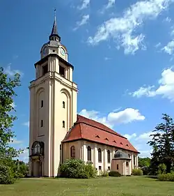 Die Kirche ist im neobarocken Stil gehalten. Der Kirchturm ist 41 Meter hoch und trägt das größte Geläut in Brandenburg. Der einschiffige Kirchenbau ist durch Pilaster und Rundbogenfenster gegliedert und wird durch ein mächtiges Mansarddach gekrönt. Im Osten schließt sich eine durch Rundbogen- und Okuli-Fenster sowie Pilaster und Gesimse gegliederte Apsis an.