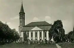 Seit 1945 verfällt die Kirche. 1980 wurde das Dach der Kirche entfernt. Es stehen noch die Außenwände und der Kirchturm.[1]