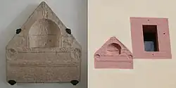 - ↑ Inschrift: CIL 13, 06521; Denkmal: Marion Mattern: Römische Steindenkmäler aus Hessen südlich des Mains sowie vom bayerischen Teil des Mainlimes. Corpus Signorum Imperii Romani. Deutschland Bd. 2,13, Mainz 2005, Verlag des Romisch-Germanischen Zentralmuseums; In Kommission bei Habelt, Bonn, ISBN 3-88467-091-3, S. 146 und Tafel 89.