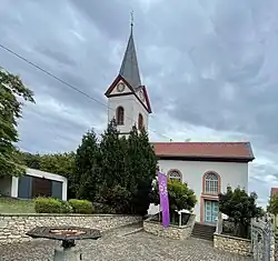 Der Platz vor der Südseite der Kirche ist von der Alzeyer Straße durch eine Mauer und ein vergittertes Tor abgegrenzt. Auf dem Platz befindet sich eine Glocke (Feiertagsglocke: „Steh fest im Sturm der Zeit!“), die von J. F. Weule aus Bockenem am Harz 1948 gegossen wurde, und die heute einem Tisch als Standfuß dient.