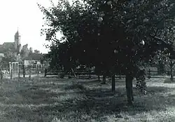 Auf dem ehemaligen Friedhof, der die Kirche umgibt, steht ein Ehrenmal. Das Sandsteinehrenmal, am Ostrand des Areals, besteht aus einem Obelisk auf einem Sockel mit Abdeckplatte. Am 17. August 1879 wurde das Denkmal enthüllt.