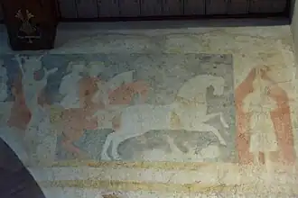 Bei den Wandmalereien handelt es sich um einen spätmittelalterlichen Bildzyklus, der die Legende des heiligen Heraklius darstellt.