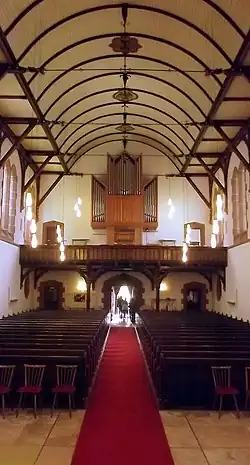 Zur Ausstattung der Kirche gehören Bänke und die Kanzel, die noch aus der Erbauungszeit stammen. Altar und Orgel sind dagegen neueren Ursprungs.[4][5]