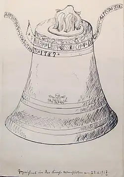 Das Geläut besteht in Großaltenstädten traditionell aus drei Glocken. Die zwei ältesten stammen noch aus dem Jahr 1453 und wurden von Johann Bruwiller gegossen.[12] Die auf beiden Glocken gleichlautenden Inschriften „O rex glorie veni cum pace Christus Maria S Antonos Anno dmi m°cccc°L III°“ (O König der Herrlichkeit, komm in Frieden, Christus, Maria und hl. Antonius, Anno 1453) lassen vermuten, dass die Kirche dem Heiligen Antonius geweiht war. Zusätzlich tragen die Glocken schöne Reliefs von Jesus und Maria.[19] Neben den beiden Glocken von 1453 stammte eine weitere, die kleinste, aus dem Jahr 1787. Sie war ein Guss der Firma Rincker und trug die Inschrift „Auf Befehl d Vohrstandts 1787 P. Rinker v. Leun goss mich v die Gemeinde Altestaedten.“ Im Ersten Weltkrieg (1917) wurde die Glocke von 1787 zur Verwertung in der Kriegswirtschaft abgeliefert und eingeschmolzen. Die 118 Kilo wiegende Glocke wurde mit 3,50 Mark pro Kilo vergütet. Dazu kam noch eine Ausbauentschädigung, sodass die Gemeinde insgesamt 531 Mark erhielt. Letztlich nur ein Spottpreis.[19] 1924 ließ man bei der Firma Schilling in Apolda/Thüringen eine neue Glocke gießen. Sie hatte ein Gewicht von 100 Kilo, einen Durchmesser von 57 cm und kostete 720 Rentenmark. Für Transport und Aufhängung fielen weitere Kosten von 120 Mark an.[6] Der Gemeinderat beschloss 1925, sie der Kirchengemeinde zum Geschenk zu machen.[19] 1942 mussten erneut zwei Glocken zum Einschmelzen abgeliefert werden. Es handelte sich um die größte Glocke und die Schilling-Glocke von 1924. Während die große Glocke nach Kriegsende auf dem Glockenfriedhof in Hamburg wiedergefunden wurde und im August 1947 zurückgeholt werden konnte, blieb die Schilling-Glocke verschwunden. Ihr Platz im Glockenstuhl ist bis heute leer. Mit der Herstellung einer neuen Glocke durch die Firma Rincker wurde das Geläut 1954 wieder komplettiert. Die neue Glocke ist nun die größte des Geläuts. Sie hängt im mittleren Teil des Turms und zeigt mit ihrem tiefen Klang Stunden und Halbstunden an.[20] Seit der Renovierung von 1967/68 ist eine Läutemaschine im Einsatz.[14] Im Turm haben sich als Reste der historischen Läutetechnik an der Decke alte Porzellanführungen für die Glockenseile erhalten. Auch der rostige Rahmen des ehemaligen Uhrwerks mit den Drahtseiltrommeln und den Steingewichten, die zum Antrieb der Turmuhr dienten, ist erhalten.[20]