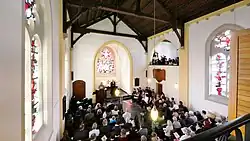 Seit etwa 1995 wird nach nahezu allen Gottesdiensten zum Kirchenkaffee in das Gemeindehaus eingeladen. Beginnend in der Amtszeit von Pfarrer Martin Jordan wurde die Gottesdienstzeit an einigen Sonntagen auf Sonntagnachmittag verlegt. Diese Gottesdienste sind meist „besondere Gottesdienste“ wie etwa Jugendgottesdienste. Beginnend mit der Amtszeit des Pfarrerehepaars Peters/Urban wird einmal im Monat der Beginn des Gottesdienstes auf 11 Uhr verlegt und als Familiengottesdienst mit anschließendem Mittagessen im Gemeindehaus gefeiert. Die Gottesdienste zu Weihnachten und zur Konfirmation, bei denen die Platzkapazität der Kirche nicht ausreichend ist, können in das nahegelegene Gemeindehaus übertragen werden, wo weitere gut 100 Sitzplätze vorhanden sind.[27]