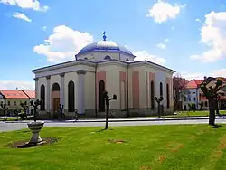 Durch Toleranzpatente von Joseph II. wurde ein Neubau innerhalb der Stadtmauern möglich. Zu diesem Zweck erwarb die evangelische Gemeinde am 5. Juli 1823 ein Grundstück am Marktplatz. Trotz mehrerer Schwierigkeiten begann 1825 der Bau der neuen klassizistische Kirche im Grundriss eines griechischen Kreuzes und mit einer großen Kuppel nach Plänen des Architekten Anton Povolný. Der Bau wurde unter anderem durch Erlöse vom Bibelverkauf unterstützt. Die fertige Kirche wurde am 17. September 1837 feierlich eingeweiht, die alte Artikularkirche wurde anschließend 1838 abgebrochen.[2]
