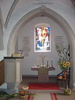 Das Fenster hinter dem Altar wird vom Glasfenster „Gleichnisbild“ geschmückt, das der Künstler Erhardt Jakobus Klonk 1969 entworfen hat.