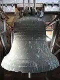 Der Turm beherbergt drei Bronzeglocken.[14] Die kleinste und älteste Glocke wurde um 1300 gegossen. Die beiden großen barocken Glocken stammen von der Glockengießerfamilie Bach. Alle drei tragen Inschriften.[15]