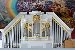 Das heutige Instrument verfügt über 53 Register, wovon 12 Register aus echtem Pfeifenmaterial und die restlichen 41 Register die einer elektronischen Orgel (Ahlborn) sind. Elektronische Termperaturaufnehmer innerhalb der Orgel stellen eine gleichmäßige Stimmung zwischen Pfeifen- und elektronischen Registern sicher, die aufgrund von Temperaturänderungen auftreten können (automatische Tonhöhenanpassung der elektronischen Register). Spiel- und Registertraktur sind elektrisch ausgeführt.