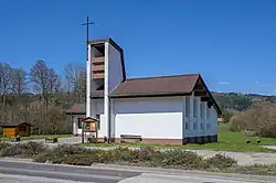 Die Grundsteinlegung erfolgte am 4. Juli 1965. Die Einweihung der Heilig-Geist-Kirche durch Superintendent Leopold Temmel erfolgte nach rund einjähriger Bauzeit am 24. Juli 1966. Der Sakralbau ist in schlichten Formen gehalten und besitzt einen kleinen Glockenturm mit Turmkreuz.[1][2]