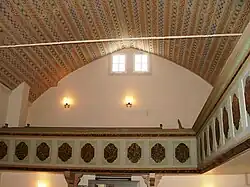 Das 1744 erbaute Kirchenschiff der Saalkirche ist geostet,[3] 15,40 m lang, 7,10 m breit und 4,55 m hoch. Im inneren ist die kielbogig geformte Holztonne aus dem 18. Jahrhundert im mit Ornamenten bemalt.