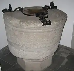Im Jahre 1968 kam der aus der Zeit vor Errichtung der Kirche, möglicherweise sogar aus fränkischer Zeit stammende Taufstein, der seit der Reformation in Herlsen (Ortsteil von Wiblingwerde) als Pferdetränke diente, wieder zurück in die Kirche.[2]
