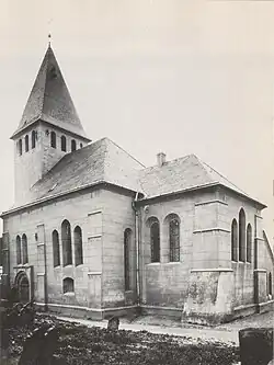 Die Kirche unterstand ursprünglich dem Patrozinium des hl. Johannes d. T. Die spätromanische Hallenkirche zu zwei Jochen, mit einem geraden Chor und einem Westturm wurde im zweiten Viertel oder in der Mitte des 13. Jahrhunderts errichtet. Ein neuer, niedriger Turmhelm wurde nach 1773 aufgesetzt. Der Quergiebel des Langhauses und der Chorgiebel wurden 1803 für neue Walmdächer abgetragen. Das Gebäude wurde 1961 und 1971 umfangreich renoviert.