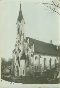Die Pfarrkirche entstand aus einem kaiserlichen Kornstadel auf dem Plaimstein gebaut war. Den 1750 errichteten „Getreidekasten“[1] kaufte 1875 Pastor Johannes Krabbe aus Ludwigslust in Mecklenburg am 9. August. Unter der Leitung des Schweriner Baurats Johann Ludwig F. Krüger wurde er von 1876 bis 1881 als Kirche umgebaut.[1]