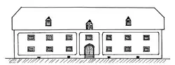 Das Pfarrhaus ist mit der Kirche verbunden und befindet sich auf deren südlicher Seite.