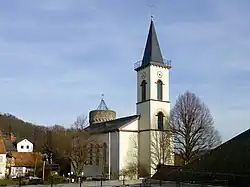 Aus der alten Kirche erhalten blieben ein gotisches Sandsteinbecken und ein Steinrelief mit Christuskopf von der Giebelfläche eines spätgotischen Sakramentshäuschens, der am Eingang des Hauses Baureneck verbaut wurde.